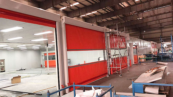 快速門是由開門傳感器提供觸發(fā)信號給控制系統(tǒng),控制系統(tǒng)根據(jù)快速卷門的當前位置發(fā)出指令給變頻器,啟動驅動電機使門簾快速上升,車輛行人通過后門簾自動下降,關閉通道,直到下一個開門信號再次打開??焖倬黹T升降速度非??欤荒芟皲撝凭黹l門一樣直接啟動停止,一般需要變頻器來控制電機的轉速。上升時越快越好,快到位時(20cm左右)需要有一個減速緩沖停止過程,以防止撞擊軌道,防止夾人,降低噪音,這也是衡量快速卷門性能好壞的一個標準。
