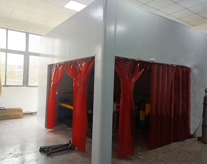 焊接防護(hù)防護(hù)簾和面板防護(hù)簾可以安裝在管道或C型材上。它們很容易橫向移動(dòng),因此靈活使用。他們的材料也是自熄性材料的。
